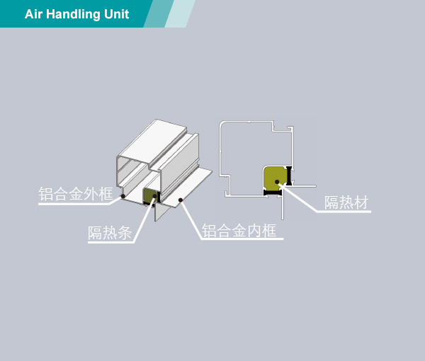 金莎js4399新一代MAH组合式空气处理机,艾洛斯(Aiolos)系列,采用防冷桥铝合金框架结构设计,面板与框架为压扣连接方式。
